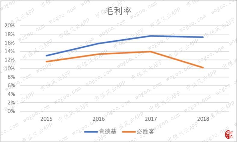 从公司内部来看,肯德基盈利能力比必胜客更强。2018年,肯德基的毛利率为17%,比2015年提高4个百分点;必胜客毛利率为10%,相比2015年下降了2个百分点。