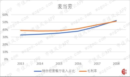 不过,从麦当劳和Restaurant Brands International(NYSE: QSR,汉堡王母公司)的财报中发现,特许经营费占总收入的比重和毛利率呈正相关关系。