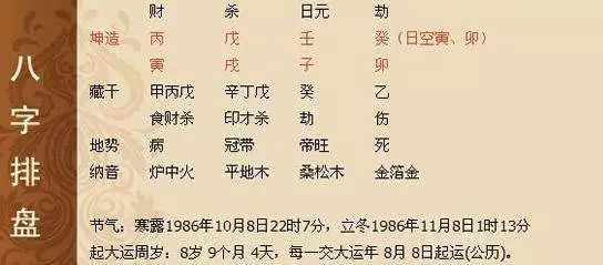 2、最为普通的定命法是以出生年号的纳音五行来定命。何谓纳音五行,即“甲子乙丑海中金、丙寅丁卯炉中火、戊辰己巳大林木等等”。这里有一个专门的六十甲子五行属性查询表,可在网上搜索查询一下,如丙寅年生炉中火命(1926,1986),丁卯年生炉中火命(1927,1987)。去查询相应的天干地支,就可以确定相应的纳音五行,就能知道自己是什么命数。此法范围太广精确度不高,不作为依据。