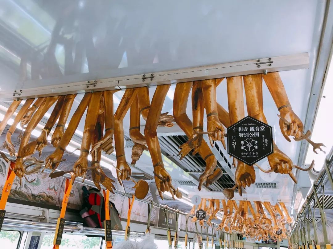 车厢内挂满无数千手观音的手,乍看之下就像是千手观音向人间伸出神圣佛手那样。