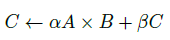 其中A和B可以进行转置或hermitian共轭转置,而A、B和C都可以被忽略(be strided),因此实际上这个公式就表示了任意矩阵之间所有可能的加法和乘法组合,例如最基本的A*B,可以将α置1,C置为全0矩阵即可,这也是其通用性的表现。