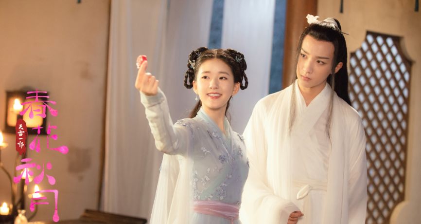 赵露思饰演女主春花,是个软萌可爱、又花痴的小机灵鬼,笑容阳光灿烂又纯粹,只因“春花秋月何时了”,就误以为是上官秋月的妹妹,两人在剧中也是超甜,经典名句就是“自家哥哥怕什么”。另外,还是正义直男萧白,两人还差点结婚了,却因为哥哥秋月阻拦而告吹。