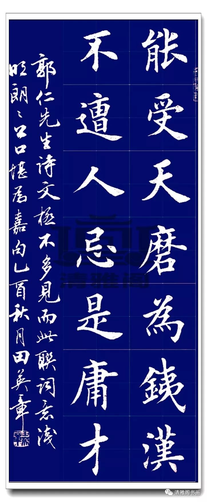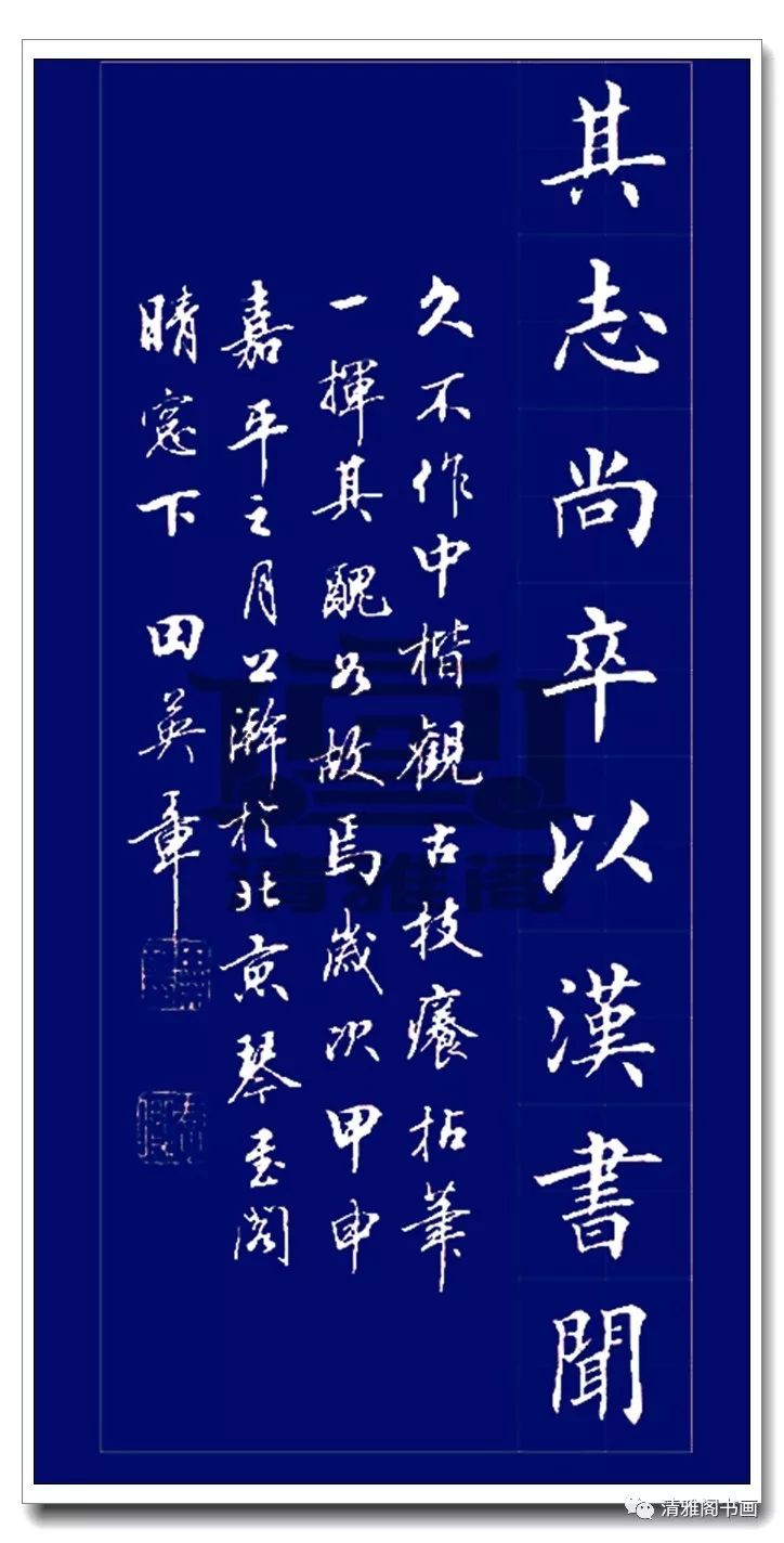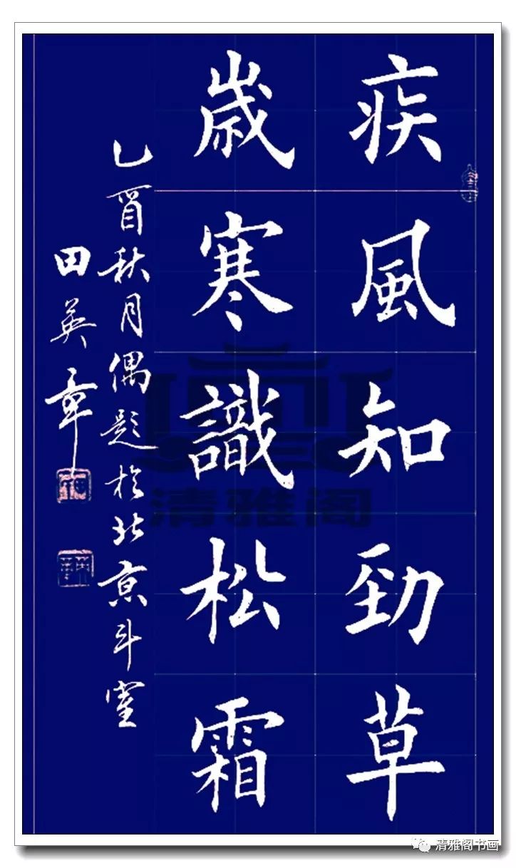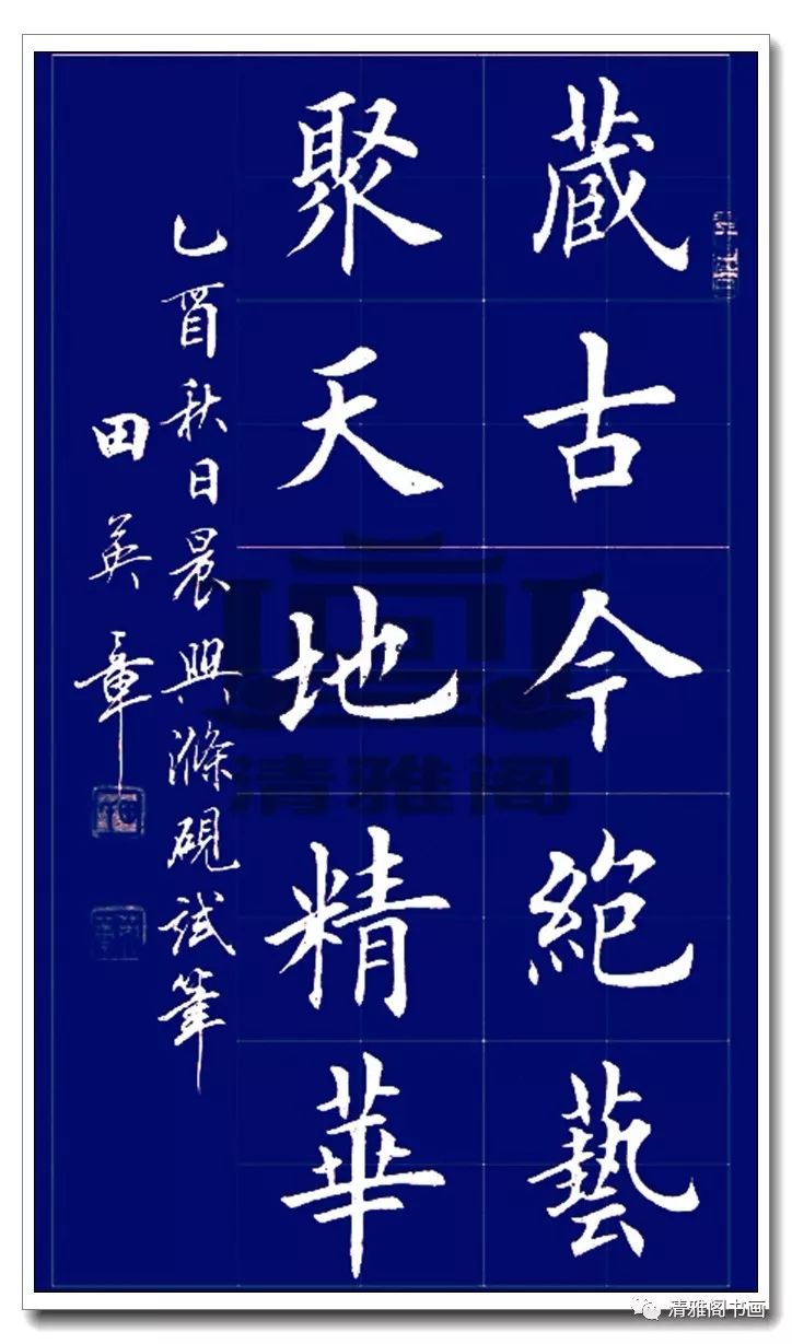 当今之书坛乃至社会对田蕴章、田英章两兄弟的书法争议颇多,一部分人认为二田的楷书太过于死板,不灵活,和复印机无异;另一部分人则认为二田的楷书是继承了欧阳询的笔法,在欧的基础上进行了创新,从字面上可以看到欧的影子,但是有和欧体有所差别,所以被尊为前无古人后无来者的书法大成者。当然网友给二田的前无古人后无来者的评价,在笔者看来这是有所夸大。就拿田英章来说,其楷书功力确实是到了炉火纯青的地步,和历史大咖相比田英章还不具备历史洗涤的条件,第二是未来是不可预测的,所以后无来者的理论是不成立。