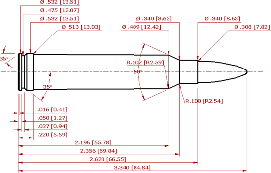 而使用英制单位的也基本都是一水英联邦和美国,但这里有个很迷的地方,不少英制单位子弹喜欢用弹头直径而非弹膛阳线直径命名。比如.308温切斯特,这玩意实际上和7.62x51一个尺寸,但是.308转成公制单位的话是7.82mm,而这是它的弹头直径,7.62是它的阳线直径。