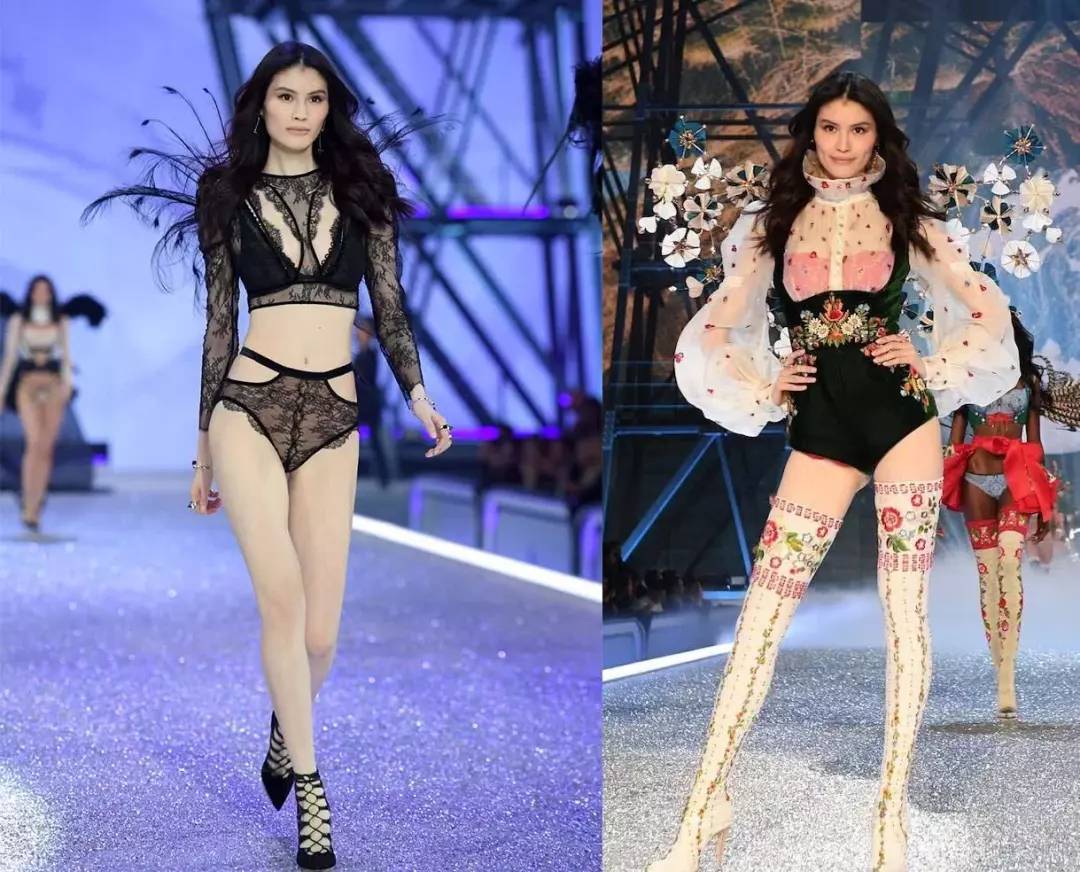 2018维多利亚的秘密 (Victoria's Secret) 内衣秀上,“何仙姑”何穗获得了两个造型,这两套造型都很有亮点,其中这身紫色“花床单”搭配的黑纱裙摆,虽然偏于花哨,但是何穗驾驭的效果还是蛮好的,对比其他人的花床单,真的算是很出挑了。另一套是何穗今年新获得的金属齿轮样式的专属天使翅膀,搭配黑色服饰霸气十足。