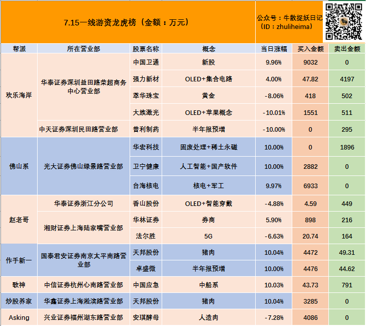 昨日龙虎榜回顾:
