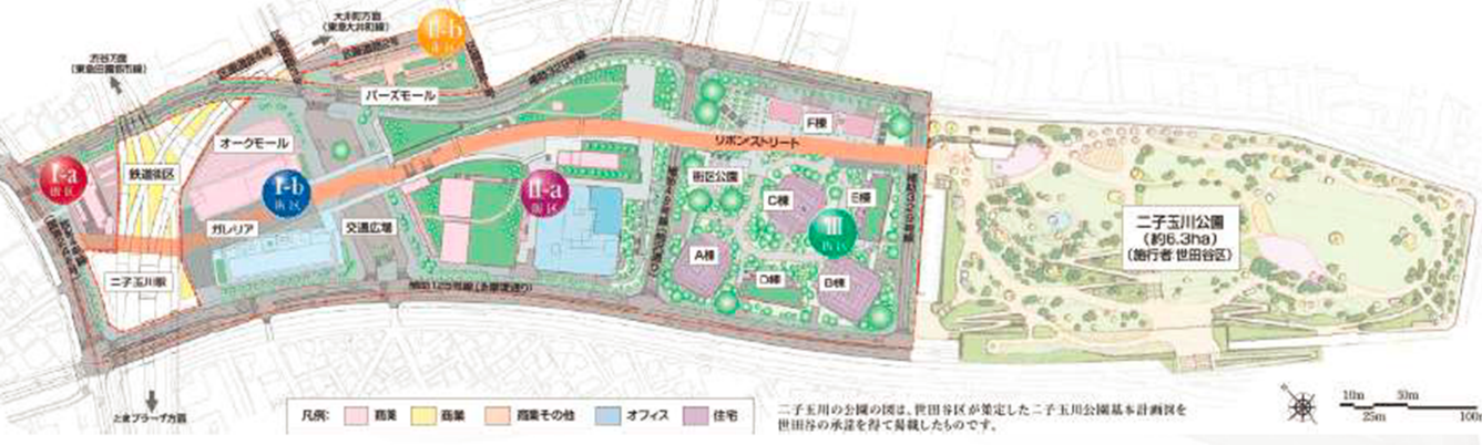 东京二玉子川项目是该区域首个城市更新项目,总占地112,000㎡,建筑面积429,200㎡,由东急电铁和东宝不动产等共同开发,分两期开发,一期于2010年竣工,二期2015年竣工。