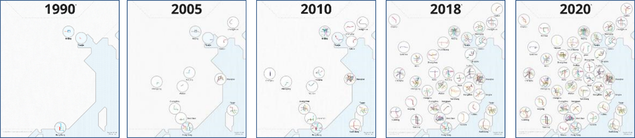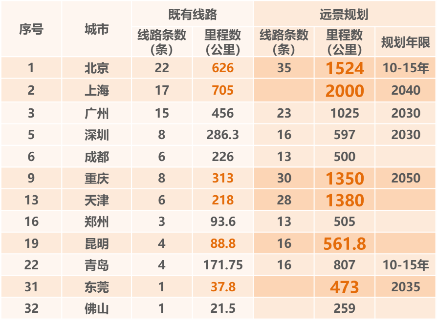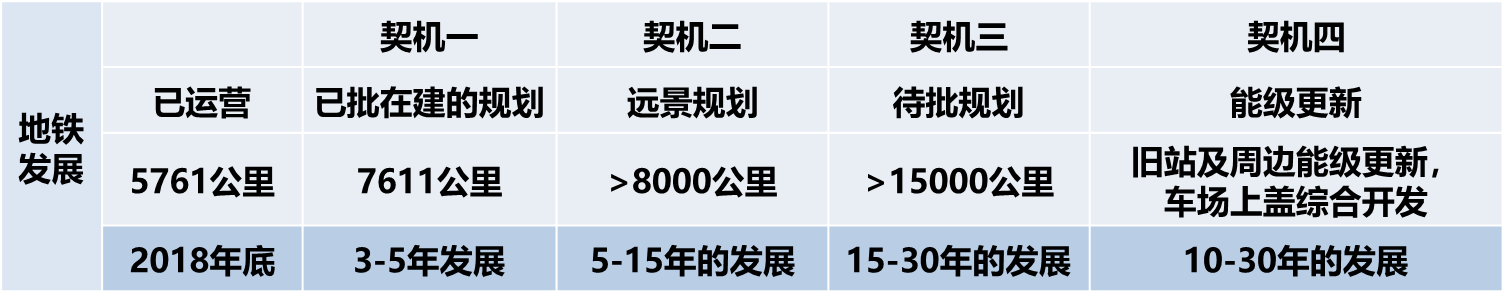 多数城市的远景规划是目前运营的3-5倍或以上。2015年上海、2017年杭州,政府提出:“车辆段原则上要做上盖物业,开发是原则,不开发例外。这标志着众多地铁、车辆段、高铁等TOD项目的开发计划。
