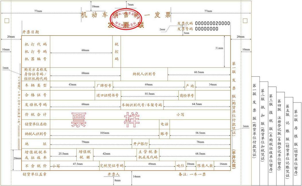机动车销售统一发票一共有六联,第一联和第二联是给购货方的,第三联给车购税征收单位,第四联给车辆登记单位,最后两联是销售方自己留的。开具时应使用 机动车 销售统一发票税控系统。在盖章中该票有特殊规定,抵扣联和报税联不得加盖印章,注册登记联一律加盖开票单位印章。