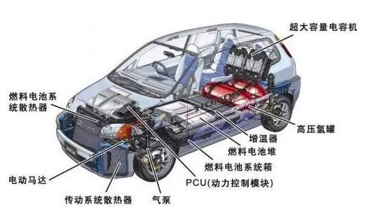 燃料电池混合动力电池汽车的动力系统除了燃料电池和电动机外,还会有一个辅助动力源,如蓄电池组或是超级电容,来提供辅助动力。在汽车工作时,燃料电池会满足基本的持续功率需求,当遇到需要加速和爬坡的情况时,辅助动力源会提供所需要的功率,支持车辆的加速和爬坡需求,而且在制动时,又可以将回馈的能量存储在辅助动力源中。