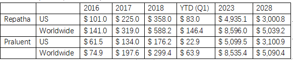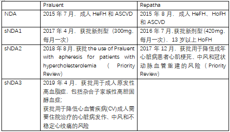 图5:Praluent和Repatha的获批时间表(在获批上均分步进行)