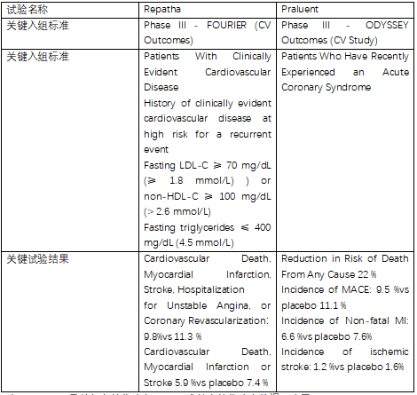注:Inclisiran目前仅有替代终点LDL-C或其它替代终点数据,尚无CVOT。
