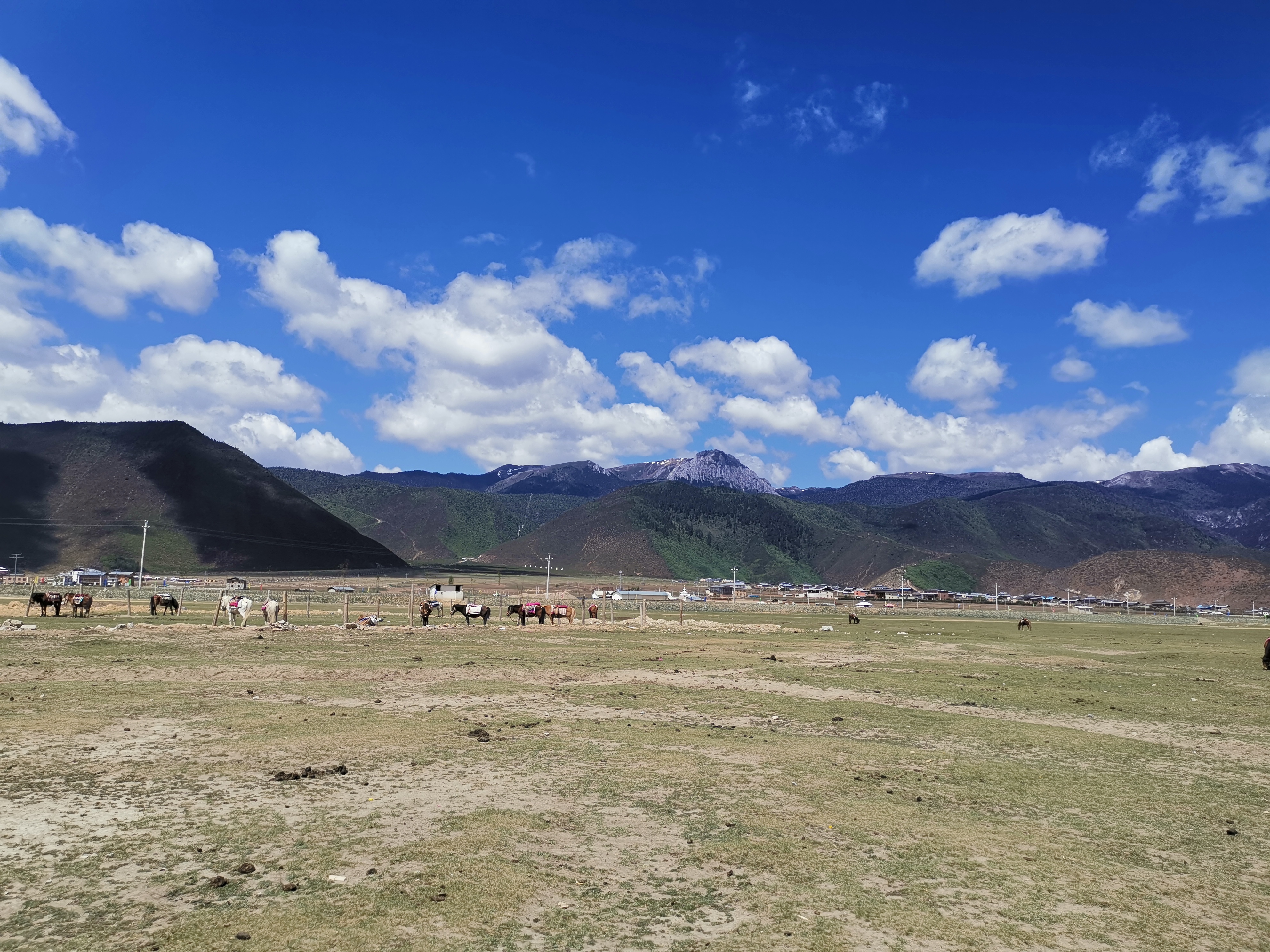 五月末,依拉草原青青草地上已发出了嫩绿的草芽,绿茵茵的草地上许多矮脚的马在啃着嫩嫩的草芽。这种马跑不太快,却很善于走山路。只有这种好脚力的马才能驮着沉重的货物,走过漫长艰险的茶马古道。支付100元,如唐僧取经,选择了一匹白色的高原马。一边骑着白马漫步在辽阔的草地上,领略藏区草原牧歌式风情;一边自嘲:骑白马的未必都是唐僧……骑高原矮脚马的也未必都是马帮的马锅头……望着周边散落的黑色牦牛在草地上撕咬咀嚼嫩嫩的草芽,感受领略着着藏区万类竞自由的蓬勃生机与低纬度的高原风情……