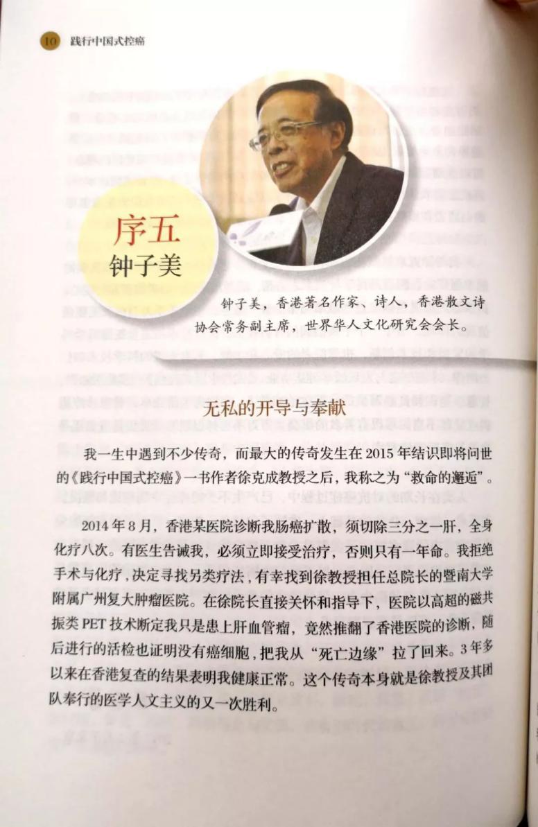 美国哥伦比亚大学长老会医院的内科医生、文学学者丽塔·卡伦在2001年提出“叙事医学”新概念,意味着文学与医学的结合,进入叙事医学的时代。徐教授就是叙事医学的先行者,他的许多散文、杂文、随想都属于叙事医学,这本《践行中国式控癌》也是。