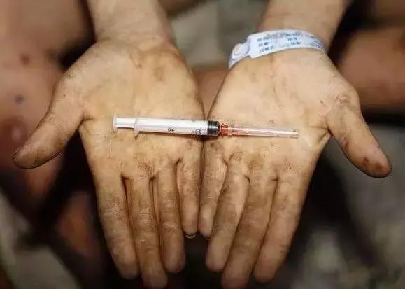 3、“开天窗”。动脉注射,俗称开天窗。这种作死的吸毒方式在长期吸毒的瘾君子身上较为常见,他们不满足于普通的吸毒方式带来的快感,以这种方式感受更强烈的快感。