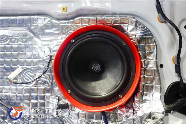 左前门海螺5系中低音喇叭的原车位安装,5系喇叭音色平滑、立体感强,中低音音盆采用玻璃纤维技术,其特点为薄而硬但毫无音染。好东西一定不能“糟蹋”。必然是要好马配好鞍,“三分器材,七分技术。”再好的喇叭,如果没有得到有效的调试和安装,都是没用的。