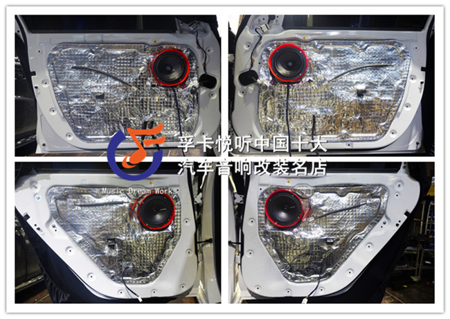 喇叭安装前使用欧洲进口环保隔音赛伦科特对门板进行双层隔音强化。车厢环境变得舒适宁静,同时也为为声场喇叭创造一个良好的工作环境。