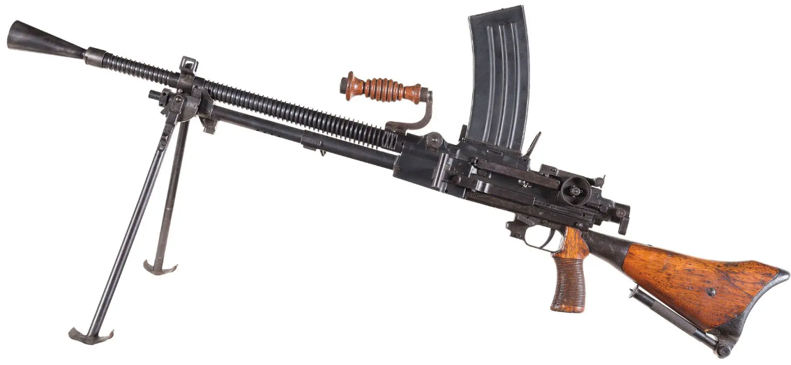 而歪把子作为班用轻机枪,除了在三年式基础上减重之外,也需要针对班组机枪的弹药通用性做一定的妥协。所以出现了歪把子最值得吐槽的两个点,供弹和歪把
