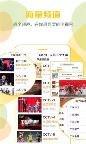 云图TV电视直播是一款非常好用的手机电视直播app,用户可以通过这款app收看国内热门的电视频道,卫视、地方台、中央台等各大界面频道都可以免费看,CCTV 1~13、CCTV少儿、CCTV音乐、CCTV地理、CCTV-News、国防军事等所有的央视频道全面覆盖,可以收看全国800多个卫视、央视节目,电视界面直播非常高清,为用户提供最清晰的电视节目观看体验,节目清晰播放,毫无卡顿,支持切换频道与线路,多种线路随你切换,切换到最清晰的播放线路,支持节目收藏,对于喜欢的电视节目频道可以收藏起来看,观看喜欢的节目更方便。不仅支持实时直播,还可以看回看,错过的节目可以回看,想看的电视可以预约,不拥再担心错过精彩的电视直播了,还提供弹幕功能,精彩弹幕互动,边看边聊,非常有趣,是掌上看电视的最好用的软件,喜欢看电视的朋友不要错过了。
