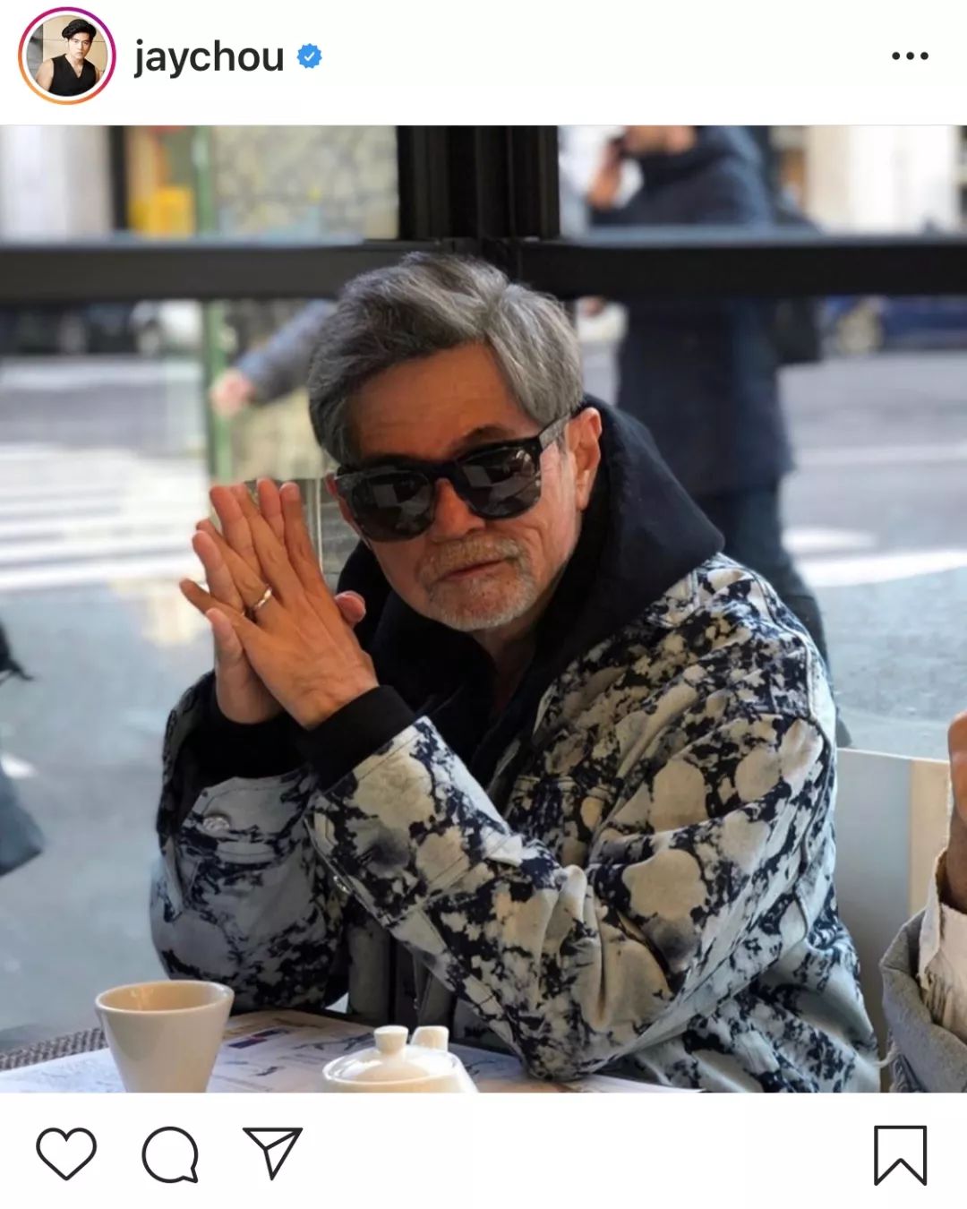 而这边粉丝在努力营业数据,周董本人那边也没闲着,跟随着潮流脚步在INS上晒了自己带着墨镜的酷酷老年照还跟大家say hi~