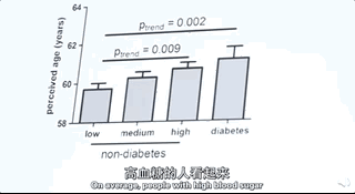 除此之外,经过不断的数据收集和测验,科学家们发现血糖较高的人看起来比实际平均要老2岁,而血糖比较低的人,则看起来会比实际年龄年轻