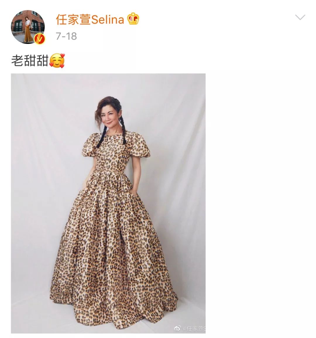 老年妆也不止男明星在玩,Selina 也在微博po了一张滤镜下的自己,还配文“老甜甜”