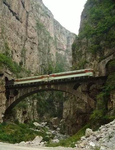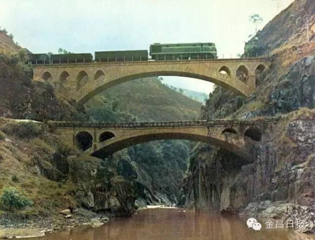 绵川江石拱桥孔跨48米,下面的桥为北京--昆明108国道桥