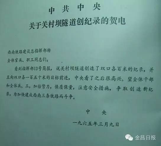 中央为一个隧道的进度发贺电,这是唯一的一次