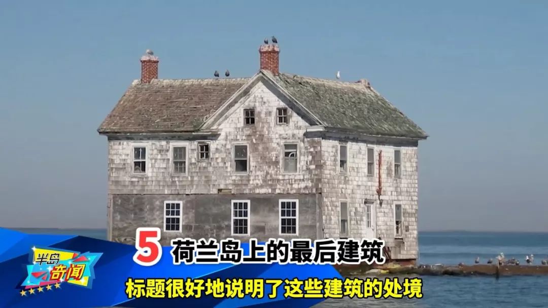 标题很好地说明了这些建筑的处境。荷兰岛位于美国马里兰州的切萨皮克湾,1600年到达那里的定居者主要是渔民和农民。到20世纪初,这座岛屿就发展建成了约70户家庭,还建有一些其他建筑,人口约360人。但是很快这里的土地就被侵蚀了,最后一批居住在这里的居民在1922年离开了这座岛屿。后来,荷兰岛的建筑一直不断地消失,1888年所建成的最后一座建筑也于2010年倒塌。从那时起,整座岛屿就完全被淹没了。