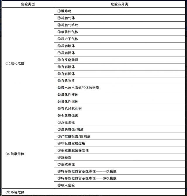 表3.1 GB 13690—2009规定的危险化学品的分类