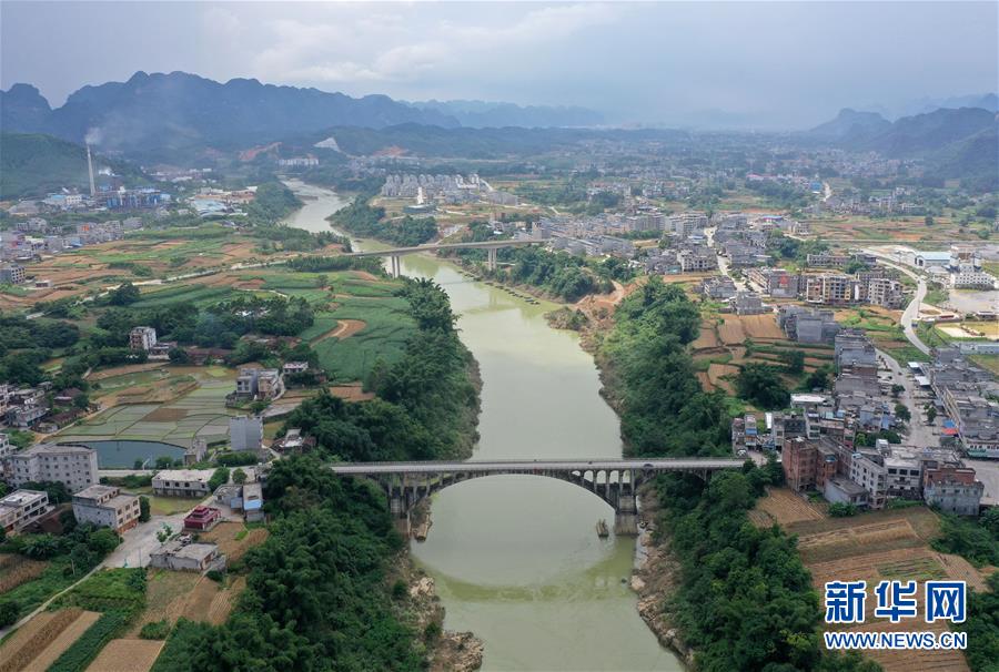 这是跨越红水河进入广西都安瑶族自治县境内的桥梁(7月23日无人机拍摄)。新华社记者 陆波岸 摄