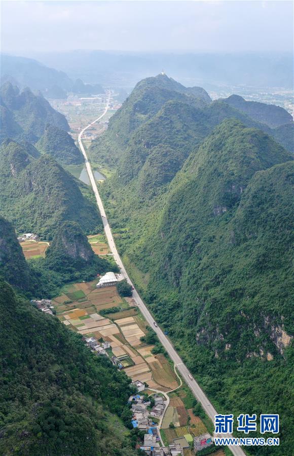 广西都安瑶族自治县面积4000多平方公里,石山面积占89%,素有“石山王国”之称,是国家扶贫开发工作重点县。 近年来,都安瑶族自治县在推进脱贫攻坚过程中,不断加大交通基础设施建设,修筑了一条条纵横崇山峻岭的通途。如今,全县公路总里程已发展到3582.6公里,为各族群众摆脱贫困、奔向小康提供更快更便利的“致富路”。 新华社记者 陆波岸 摄
