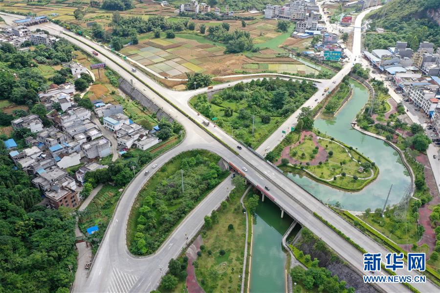 这是广西都安瑶族自治县安阳镇连接兰海高速公路的道路(7月23日无人机拍摄)。新华社记者 陆波岸 摄