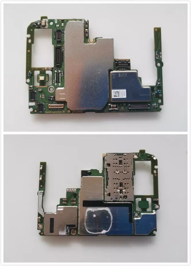 好东西都放在后面,先看主板。断开屏幕、电池、侧边指纹模组、音量键、摄像头、主副版和同轴线FPC和BTB,巧取下主板。