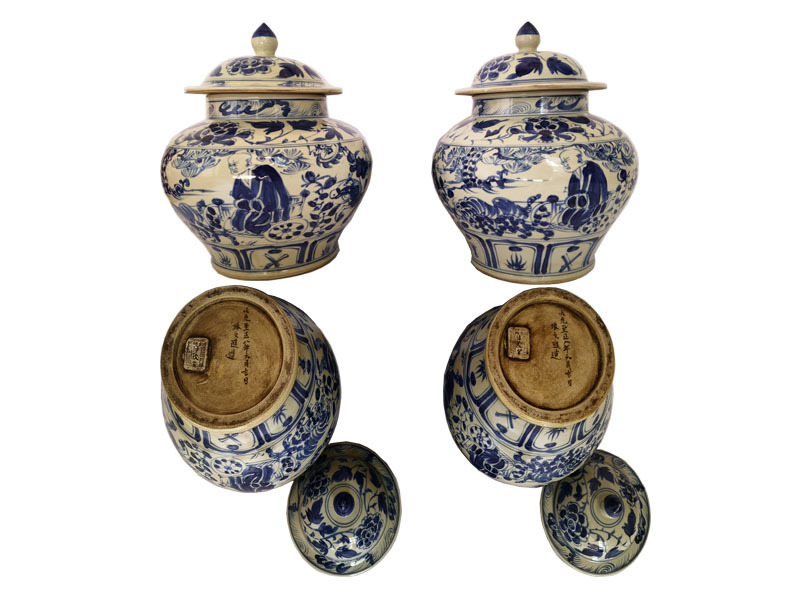 此一对元代青花罐口径:15.3cm、底径:16.5cm、高36cm。整个青花纹饰呈色浓艳,画面饱满,疏密有致,主次分明,浑然一体。人物刻画流畅自然,神韵十足,山石皴染酣畅淋漓,笔笔精到,十分完美。它不仅是我国,也是人类发展史上重要的精神财富。此外,随着时间的推移,由于瓷器的易碎性,眼前这两件完美无缺的元代青花将越发显得弥足珍贵,具有很高的收藏价值和市场价值。