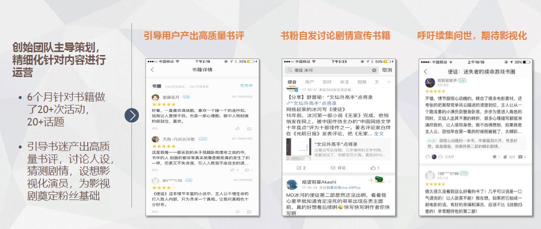 裂变经营是号召粉丝把书主动介绍给别人,然后用一些福利活动刺激他们去写一些评论。而写评论转发之后,又给他相应的福利,其实这就是裂变的一种方式。
