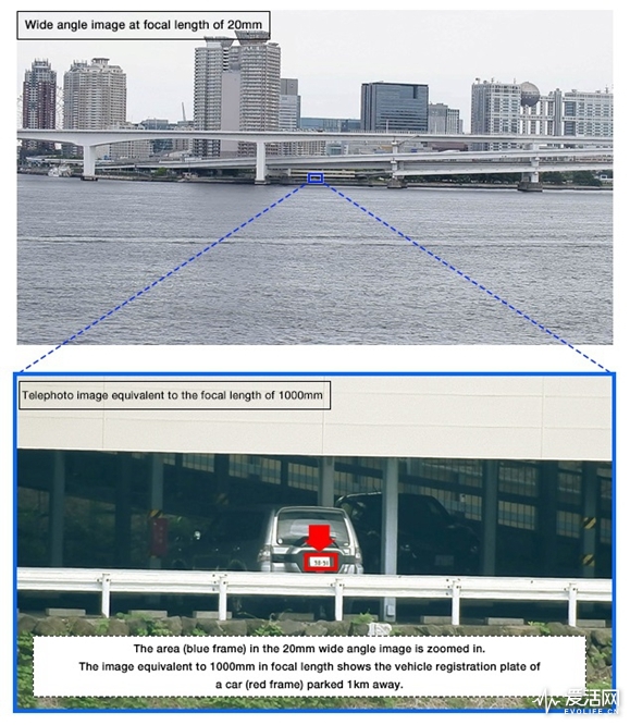 那富士SX800到底能看多远呢?富士展示了其摄像头能识别3公里外拍摄的东京塔观景台,以及1公里外对焦汽车车牌等特性。40倍光学变焦镜头,如果算上1.25X的数码变焦,其总焦距相当于1000mm,的确是被曝光拍到1公里以外的景物。