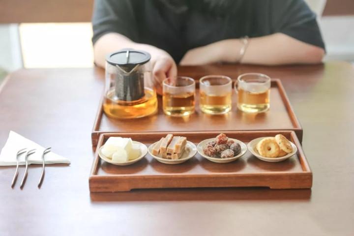 但我们在这里挖掘到了性价比高、颜值高、口味也不赖的下午茶,避开人海另辟蹊径的那种。一泡铁观音、一套茶歇,仅56元便能享受美好午后。一口酥、桔红糕、山楂条、梅子,佐茶食用,酸甜、酥脆、软糯。