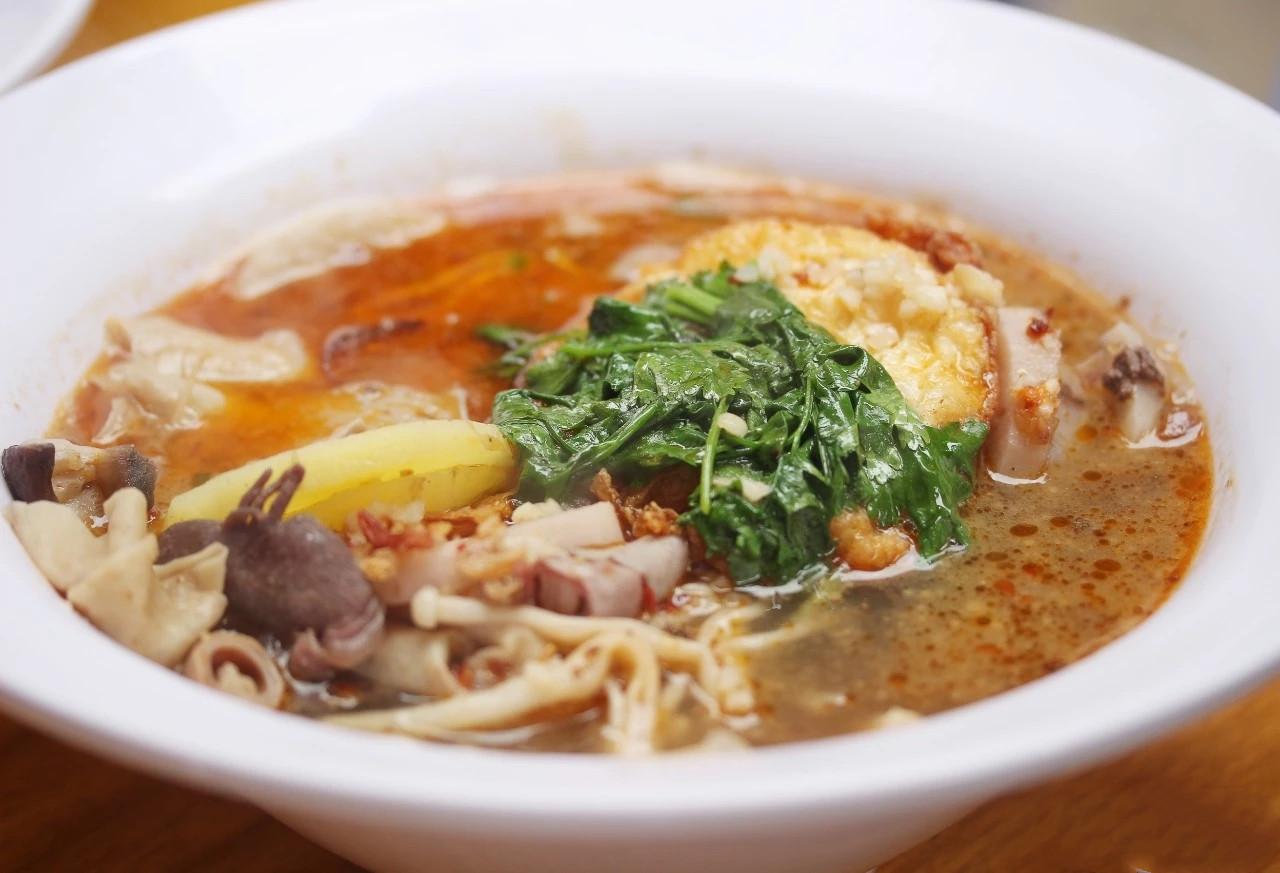 初见老板娘会令人想起三毛,她是印尼华侨,气质蛮好,是有风情的漂亮。会亲自介绍各种娘惹菜的原材料,对于大部分人来说还是比较新奇的体验。坐定,喝一盏茶、吃一口闽南炸物,等着娘惹菜的“登场”。咖喱鸡、冬阴功是比较对味的两道,其他菜品就较偏普通了。