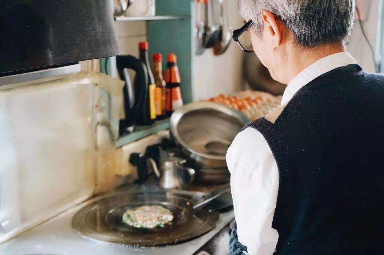 位置很不好找,在居民楼的二楼,那也是老人居住的地方,就在他自己的厨房里做海蛎煎。有种来老人家里做客的感觉。