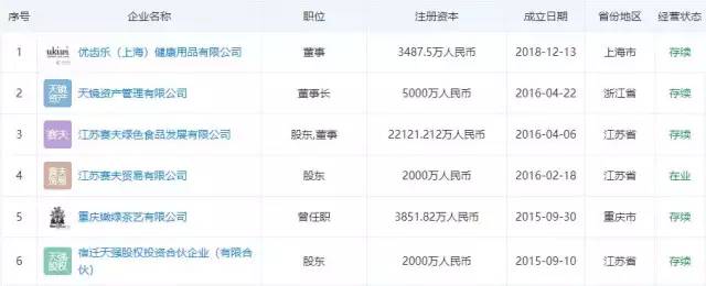 从天眼查披露的信息得知,章泽天所有公司11家,涉及餐饮、健康、文化等各个领域。