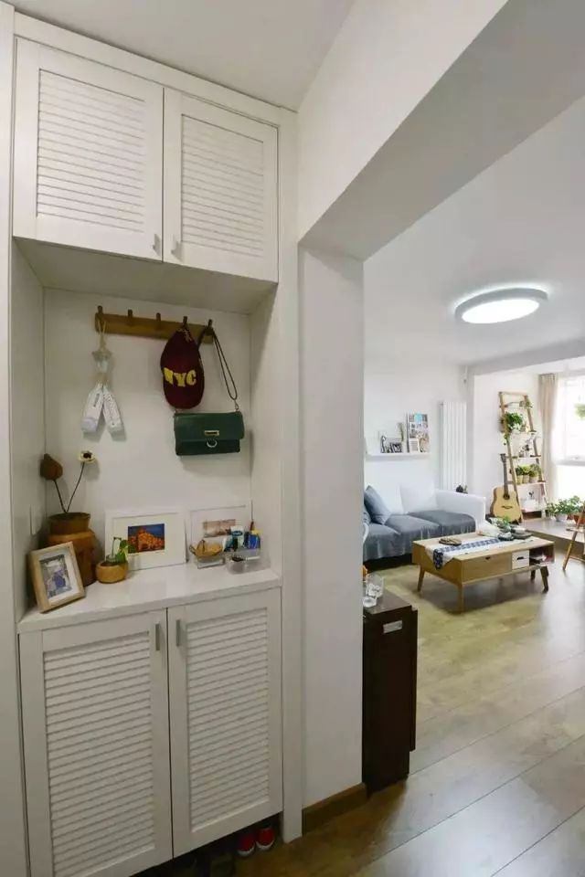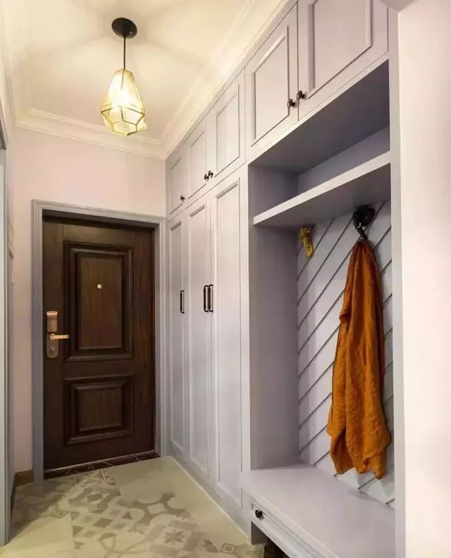 对于一些层高较小的户型而言,如果玄关装吊顶的话,难免会让小空间显得更加狭小,遇到这样的户型,其实玄关不用吊顶也是挺美的,或是留空,或是石膏线,简单处理一下整体效果也是相当的棒。