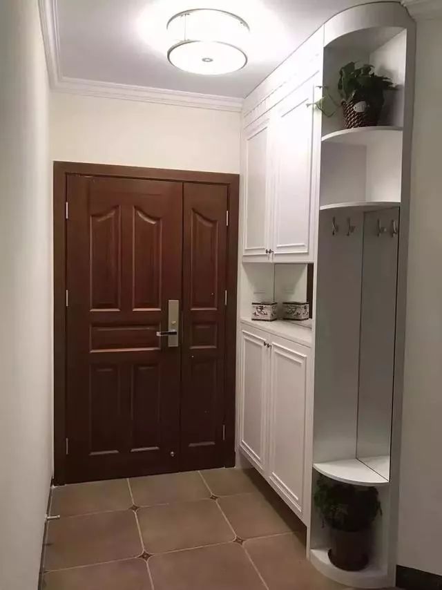 当然如果房子整体风格是比较洋气的那种,觉得空空的天花过于单调,无法衬托墙面与其他地方的风格,也可以在玄关的天花上做一圈石膏线,这样既显得档次,又不会显得过于太复杂或压抑。