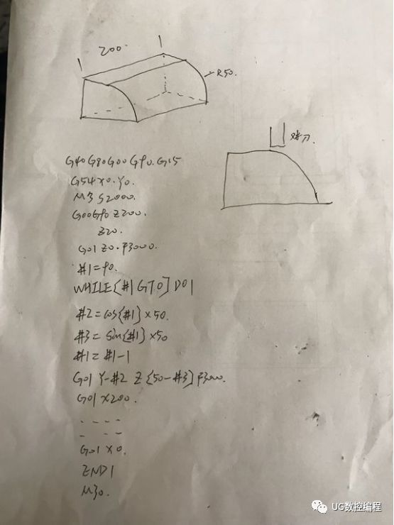 下面再给大家介绍下加工中心宏程序铣圆弧倒角及圆弧面的方法,工件长度任意长都行。