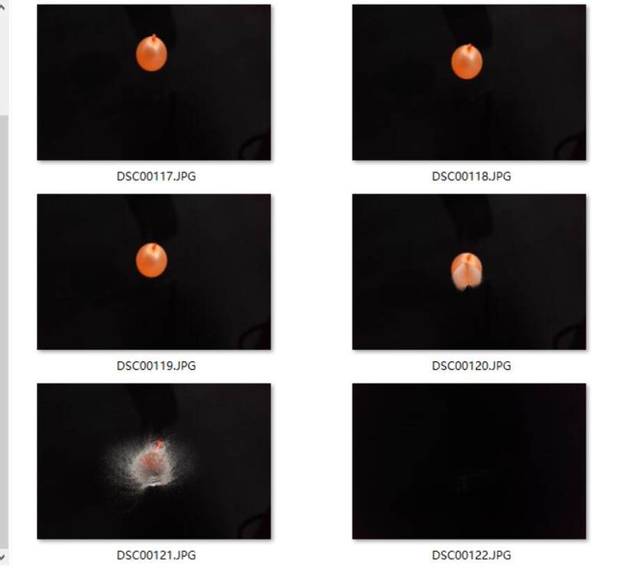 使用单次连拍模式拍摄的水球炸开的瞬间