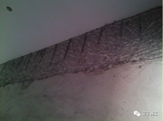6.1 喷浆前将房间内墙面上钢筋头、拉丝杆、铁钉全部切割(要求切割后不高于墙面)完毕,墙面上模板条、模板皮、方木条、双面胶条全部清净。