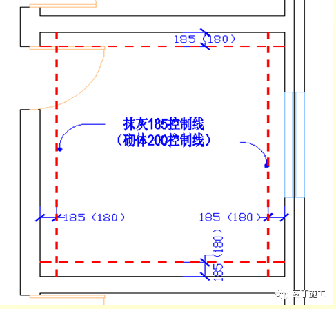 5.1 抹灰控制线要求:利用砌体或主体结构的200控制线,作为抹灰的185(180)控制线,如缺失或不清晰,应补充弹线。