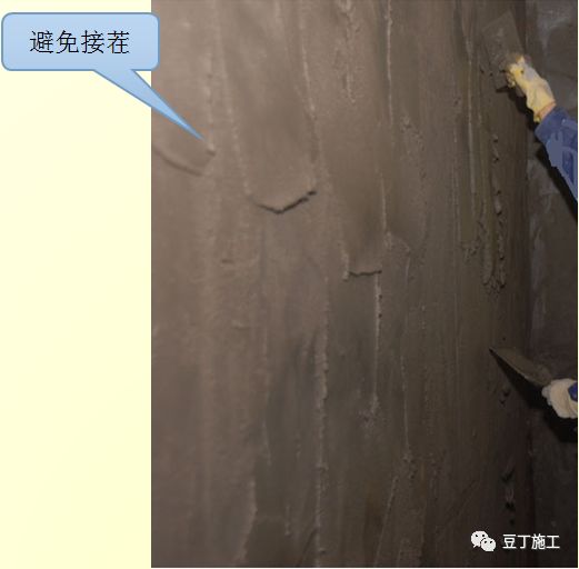 1)抹灰作业;根据湿筋的高度抹面层灰,建议抹灰厚度控制在15mm以内,超过15mm时增加分层,搓抹密实。