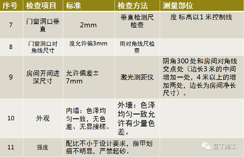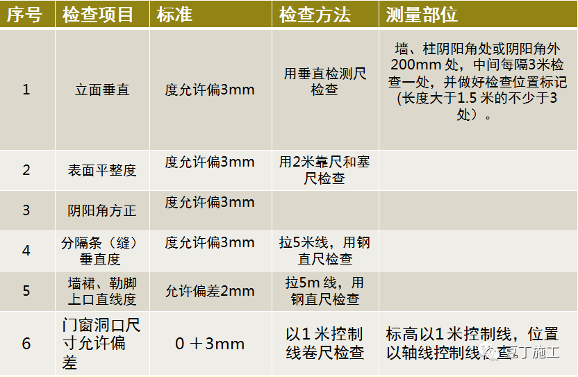 7.16 抹灰收面后,须在抹灰干硬之前完成实测、整改。