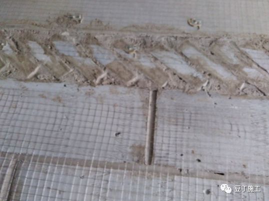 4)不同材料的基层交接处未按规范要求挂网,或加强网与各基体的搭接宽度小于100mm。